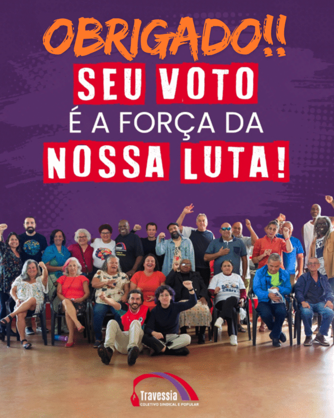OBRIGADO!!! O coletivo popular e sindical TRAVESSIA agradece imensamente os 316 votos recebidos nas Eleições STU 2025! Essa votação coloca a “Chapa 2: PAEPEs na LUTA” em primeiro lugar no pleito, com a coordenação-geral do STU, e expressa o anseio de mudança da categoria.